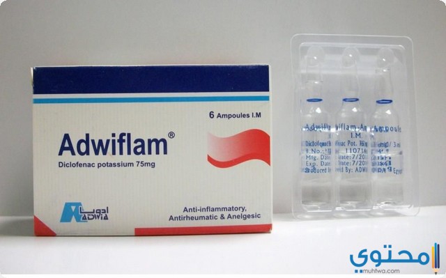أدويفلام Adwiflam مسكن ومضاد للالتهاب من خلال موقع محتوى, يحتوى عقار أدويفلام على مواد فعالة تساعد على تسكين آلام الجسم ومواد مضادة للالتهابات فهو يحتوى على مادة الديكلوفيناك والتي تعمل على تثبط السيكلواكسيجيناز وبتالي منع تكون مادة البروستاجلاندين المسببة للألم والالتهابات.