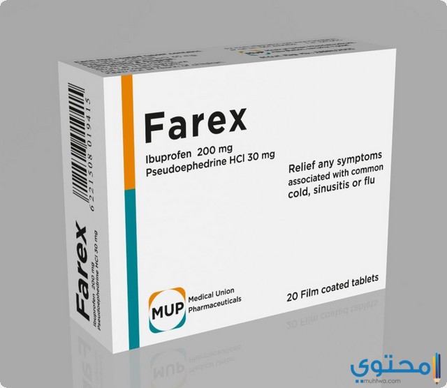 فاركس Farex لعلاج نزلات البرد والأنفلونزا من خلال موقع محتوى, يستخدم عقار فاركس لعلاج نزلات البرد والقضاء على الأنفلونزا والتخلص من الأعراض المصاحبة لها, فهو يحتوى على مادة ايبوبروفين وهي مادة مسكنة للآلام ومضادة للالتهاب وخافضة للحرارة, ومادة وسودوإيفيدرين وهي مادة موسعة للشعب الهوائية وتضيق الأوعية الدموية مما يساعد على علاج احتقان الجيوب الأنفية.