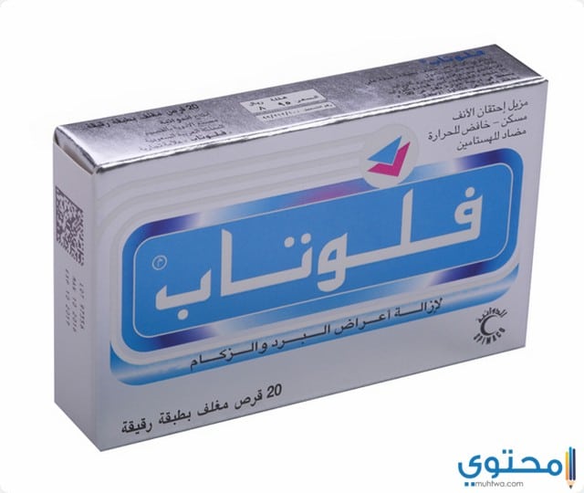فلوتاب Flutab أقراص لعلاج البرد والأنفلونزا من خلال موقع محتوى, يستخدم العقار لعلاج نزلات البرد والأنفلونزا حيث يحتوى على مادة البارسيتامول وهي مادة مسكنة للآلام وخافضة للحرارة ومادة الدايفيهايدرامين وهي مادة مضادة للهستامين وتساعد في تخفيف الحكة كما يحتوى علي مادة السيدوافيدرين مادة مزيلة للاحتقان ويساعد على قبض الأوعية الدموية.