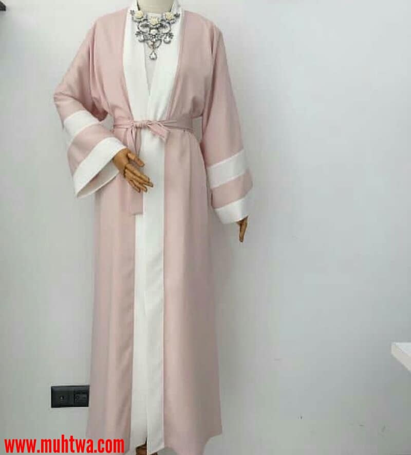 عباية أنيقة جدا من إحدى بيوت الأزياء فى دبى وهى واسعة ملونة بالأبيض والأسود بالإضافة إلى الفوشيا فى الذهبى.