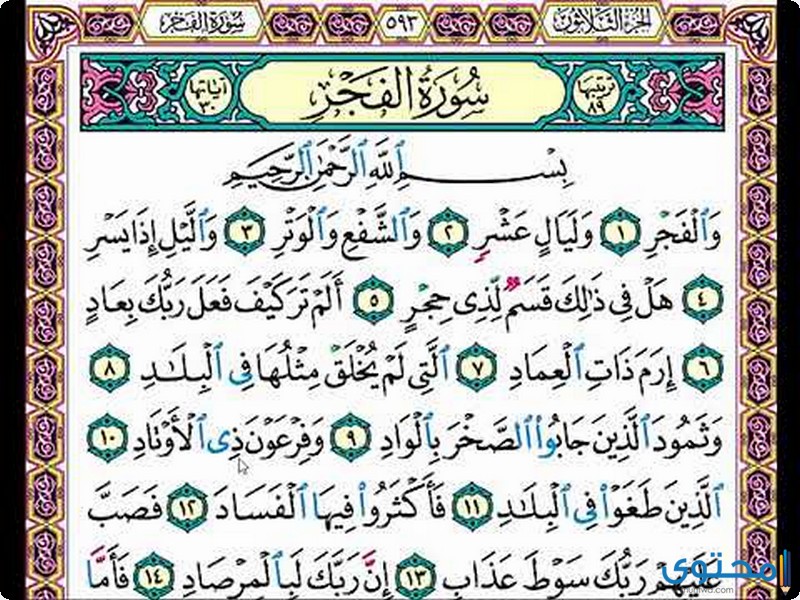 أسرار سورة الفجر وفضل تلاوتها عبر موقع محتوى, سورة الفجر إحدى السور المكية التي لم يذكر فيها اسم الله عز وجل، نزلت هذه السورة المباركة بعد سورة الليل وعدد آياتها 30 آية كما أنها إحدى السور القرآنية التي تقع في الجزء الأخير من القرآن الكريم وهو الجزء الثلاثين.