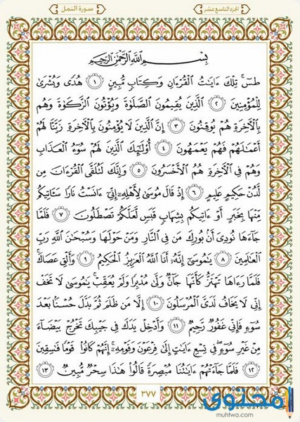 دلائل تربوية في سورة النمل عبر موقع محتوى, سورة النمل سورة مكية عدد آياتها ثلاث وتسعون آية شريفة نزلت في مكة المكرمة ولذلك فهي سورة مكية وتعد هذه السورة رقم السابع والعشرون وفقا لترتيب المصحف العثماني.