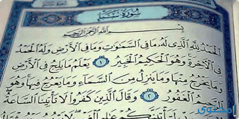 فضل سورة سبأ وفوائد قراءتها عبر موقع محتوى, سورة سبأ تقع في الجزء الثاني والعشرون من القرآن الكريم وترتيبها بالنسبة لباقي سور القرآن هي السورة رقم الرابعة والثلاثون وعدد آياتها 54 آية نزلت في مكة المكرمة فهي سورة مكية بالإجماع وليس هناك أى اختلاف على كونها سورة مكية.