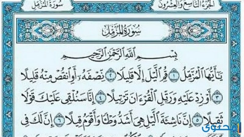 الأمر الرباني بقيام الليل في سورة المزمل عبر موقع محتوى, سورة المزمل نزلت على سيدنا النبي محمد صل الله عليه وآله وسلم بعد سورة القلم في مكة المكرمة، وهي السورة رقم الثالثة والسبعون من سور القرآن الكريم وهي تقع في الجزء التاسع والعشرين من القران الكريم وعدد آياتها 20 آية.