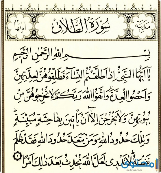 الدروس المستفادة من تلاوة سورة الطلاق عبر موقع محتوى, سورة الطلاق يطلق عليها أهل العلم اسم سورة النساء الصغرى، تقع هذه السورة في الجزء الثامن والعشرون في المصحف العثماني، هذه السورة العظيمة ترتيبها في المصحف الشريف هو الخامسة والستون وعدد آياتها الشريفة هو اثني عشر اية، بدأت هذه السورة ب النداء على سيدنا النبي محمد صل الله عليه وآله وسلم، نزلت هذه السورة في المدينة المنورة فهي سورة مدنية من المفصل نزلت بعد سورة الإنسان، تابع معنا المقال لمعرفة فضل تلاوة الطلاق.