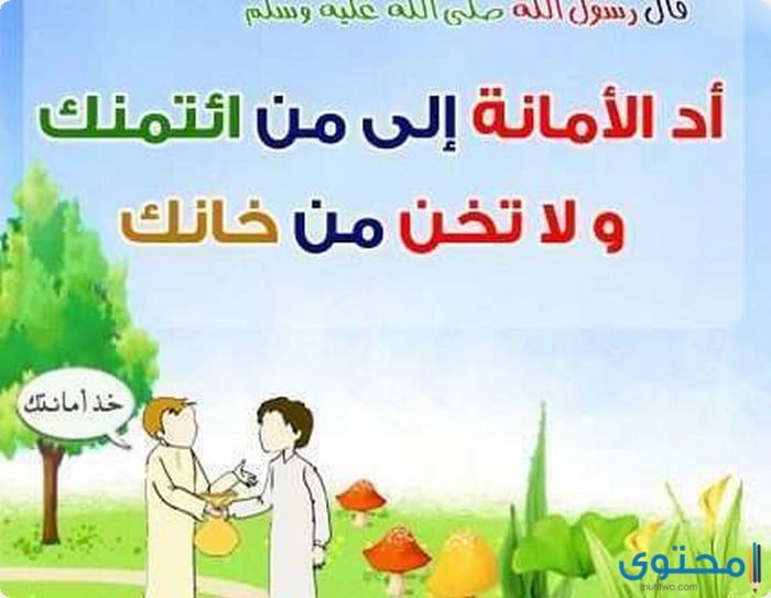 • الأمانة تحث الإنسان على التحلي بأخلاق الأيمان التي وصفها الله تعالي ورسوله الكريم سيدنا محمد صلى الله علية وسلم.