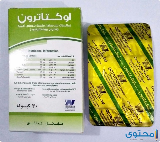 أوكتاترون كبسولات مكمل غذائي دواعي الاستعمال عبر موقع محتوى, يستخدم هذا الدواء كمكمل غذائي حيث يعمل على تعويض الجسم من العناصر الغذائية التي يحتاجها بشكل دائم حيث يعمل هذا الدواء على تخزين المعادن والفيتامينات وبعض العناصر الأخرى التي تساعد على تنشيط الجسم وتقويته بالإضافة إلى انه يستخدم في معالجة حالات الأنيميا ويعمل على تقوية الجهاز المناعي ومن خلال هذا المقال عبر موقع محتوى سوف نتعرف على دواعي استخدام هذا الدواء الآثار الجانبية التي تحدث عند استخدامه.