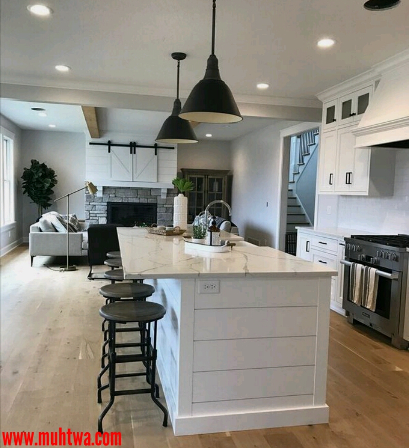 ديكور مطبخ مفتوح يناسب المنازل الواسعة.