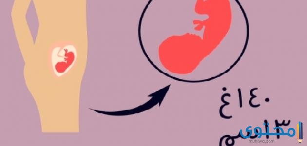 في هذا الأسبوع يصبح طول الجنين 13 إلى 14 سم والوزن 5 أونصة.
