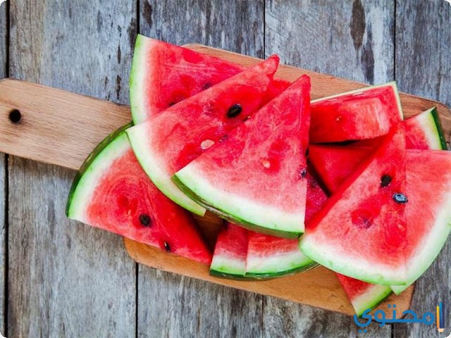 البطيخ من أنواع الفواكه المسموح بها لخسارة الوزن فهو يمثل الماء 90% من تكوينه كما يحتوى على نسبة سعرات حرارية منخفضة فتناول 100 جرام من البطيخ يمنح 30 سعر حراري فقط و 6.20 غرام من السكريات .