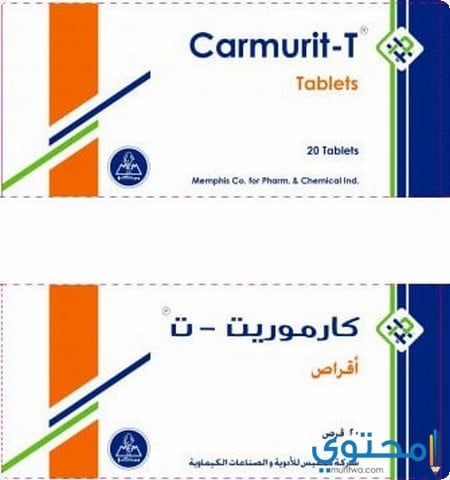 - يتم تناول أقراص Carmurit عن طريق الفم وتوجد في صورة الدم بشكل حر ومتحد مع البروتين .