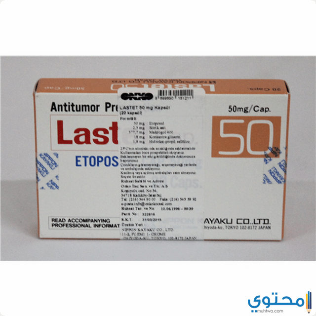 لاستيت لعلاج سرطان الرئة Lastet من خلال موقع محتوي , يحتوي دواء على مادة ايتوبوسيد وهي مادة تثبط عمل انزيم التوبرايزوممراز 2 المسئول عن تضاعف الحمض النووي مما يعمل على تقليل نشاط والتخلص من الخلايا السرطانية .