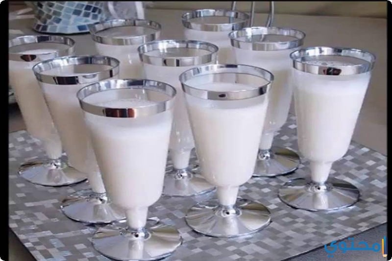 المكونات: (اللبن, النشا, الفانيليا, السكر حسب الرغبة, بشر جوز الهند, الماء).