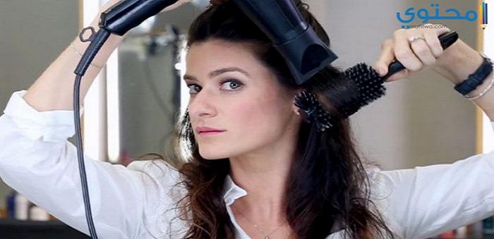 - احرصي علي وضع المجفف فوق الفرشاة وخصوصا عند لف أطراف الشعر كرري ذلك مع جميع أقسام الشعر ماعدا الغرة .