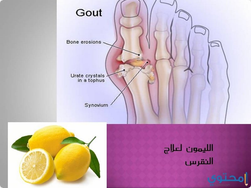 عصير الليمون غني بالمركبات الطبيعية التي تساعد في علاج مرض النقرس, حيث أكدت الدراسات العلمية الحديثة أن الحمضيات بشكل عام والليمون بشكل خاص يعمل علي التخلص من حمض اليوريك من الدم, والذي ينتج بسبب الإصابة بمرض النقرس, حيث يعمل هذا الحمض علي أضرار عديد من أعضاء الجسم مثل الكلي, والذي يجعل تكون الحصوات والشوائب بها أسرع من المعتاد, كما يؤدي أيضا إلي كسل وظائف الكبد, والذي يجعل من الليمون عنصرا فعالا في الحد من زيادة نسبة الحمض في الجسم, هو أن الليمون يحتوي علي نسبة عالية من حمض الستريك والذي يساعد الكبد علي تكوين كربونات الكالسيوم والتي تحيد من دور حمض اليوريك بشكل كبير, ومن أفضل الطرق للاستفادة بالليمون في علاج النقرس هو تناول مشروب عصير الليمون الممزوج بالماء البارد 3 مرات يوميا بعد الوجبات.